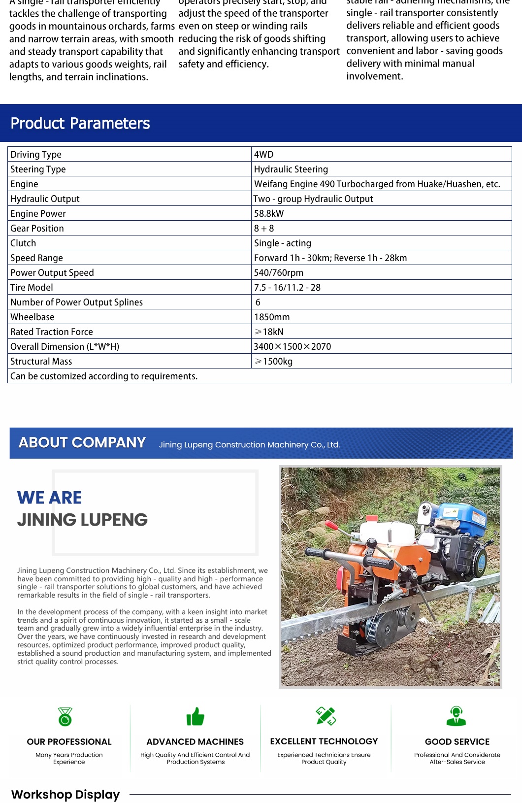 Not Afraid of Terrain, Mountain Tea Garden Site, Agricultural Climbing Rail Car, Orchard Monorail Transport Vehicle